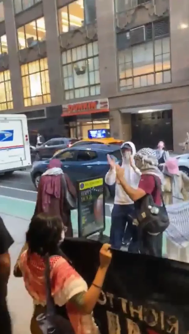 Moti Zilber, the owner of the Mr. Broadway Deli on West 38th Street, said the Jewish students were enjoying their meal Tuesday morning when the protesters descended upon the restaurant, blocking the entrance and shouting vulgarities at them.