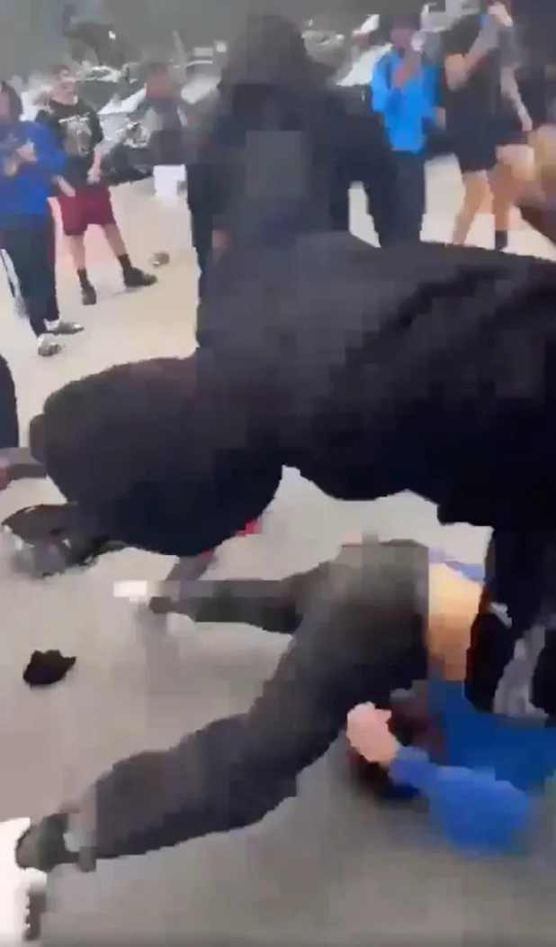 The unidentified student was pummeled by at least a half dozen teen thugs before he was picked up and hurled onto the pavement head first near the Parkland, Florida campus — leaving him sprawled out motionless on the ground, video footage posted by TMZ on Wednesday shows.