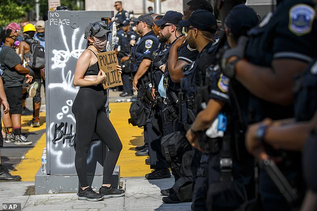 The woman faced off with at least three black officers during a protest at Black Lives Matter Plaza near the White House which lasted late into the night.