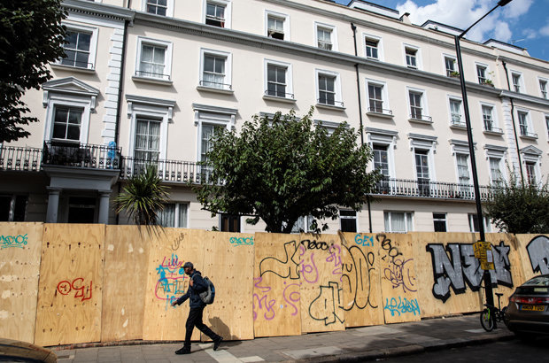Shocking pictures show large wooden barricades have been put up around property in the posh West London neighbourhood.