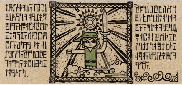 Perhaps certain beasts only come out of their lairs at certain times. I had to take my chances and forge ahead now. But once inside though, I forgot why I had entered at all, and I began to aimlessly look around. Brushing aside the dangling ivy on the tall granite walls, I saw painted murals hidden in the foliage. The runes looked familiar: