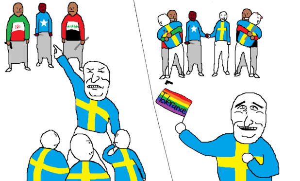 Sweden just appears to have an inordinately high percentage of sod-munching peasants and petty bobos with no self-pride – that’s all. By my reckoning, this means that the country can easily be conquered by a handful of people and the population will just shrug and go along with it.