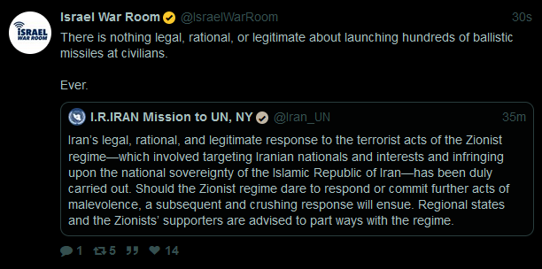 I made the executive decision as the attacks were happening last night to not write any kind of serious commentary on it, given that I have a right to celebrate on such an evening, instead posting a couple of pornographic throwaway joke articles that included videos of the strikes and mocked American Republicans screaming about the innocence of the Jews.