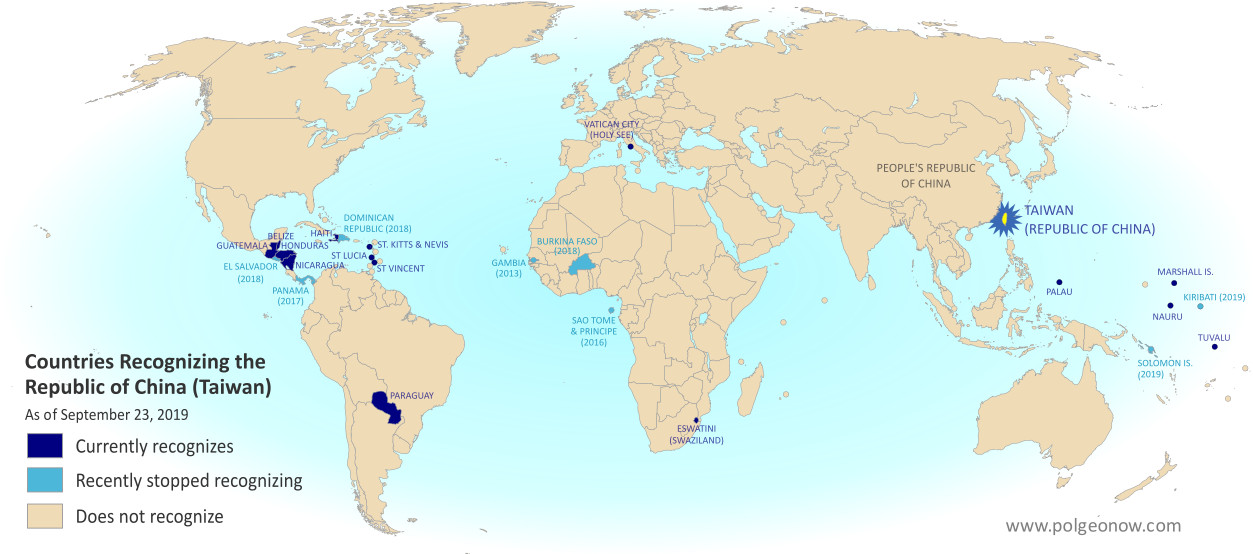 The majority of countries – including the United States – recognize “Taiwan” as a part of China. In 2013, even Gambia stopped recognizing it as a country.