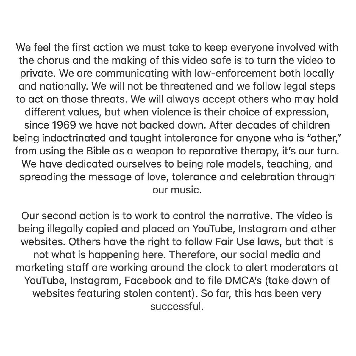 An Important Message to the Chorus Family. ❤️ pic.twitter.com/XBpSY6r4j7