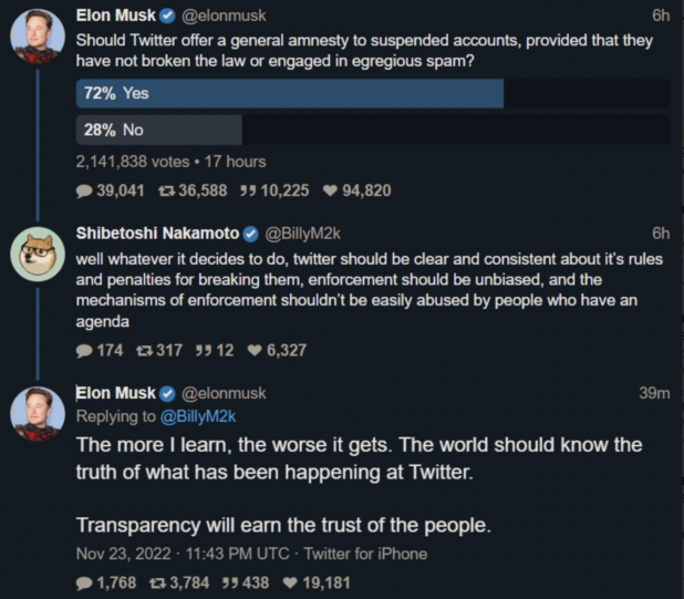 Thus far, Elon has allowed Ye back on, which proves you can talk about the Jews, he’s let Donald Trump back on, which proves you can talk about election fraud and January 6 nonsense, he’s let Alex Berenson back on, which proves you can talk about the coronavirus/vax hoaxery, and he’s let The Babylon Bee back on, which proves you can say trannies aren’t real. That pretty much covers all the bases.