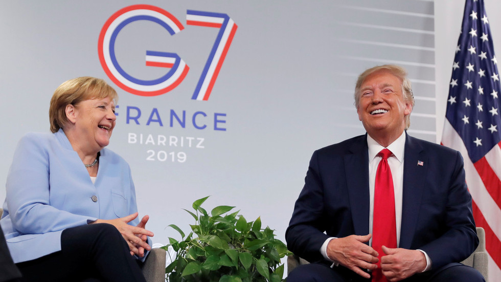 Merkel: 😁🤭🤐#G7Biarritz #G7France #Trump #TrumpMerkel #Merkel pic.twitter.com/2U4jMJq57a— t-online (@tonline) August 26, 2019