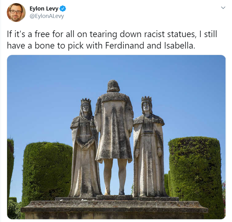 Where are the mobs tearing down his statue? OK, there aren’t enough blacks in Cordoba to form a decent-sized mob. But what about Washington, DC, where a plaque to Maimonides stands in the US Capitol building? There should be plenty of tooled-up bruthas there.