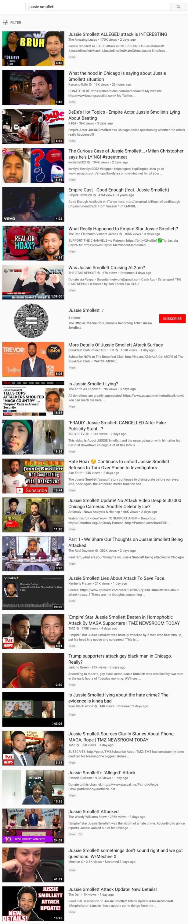 Before we get into black people’s opinions on the alleged MAGA hate crimes attack on the homosexual black Jew actor Jussie Smollett in downtown Chicago, I just want to mention that when you type “Jussie Smollett” into YouTube, the first four videos and almost all of the rest of the videos are about the alleged attack.