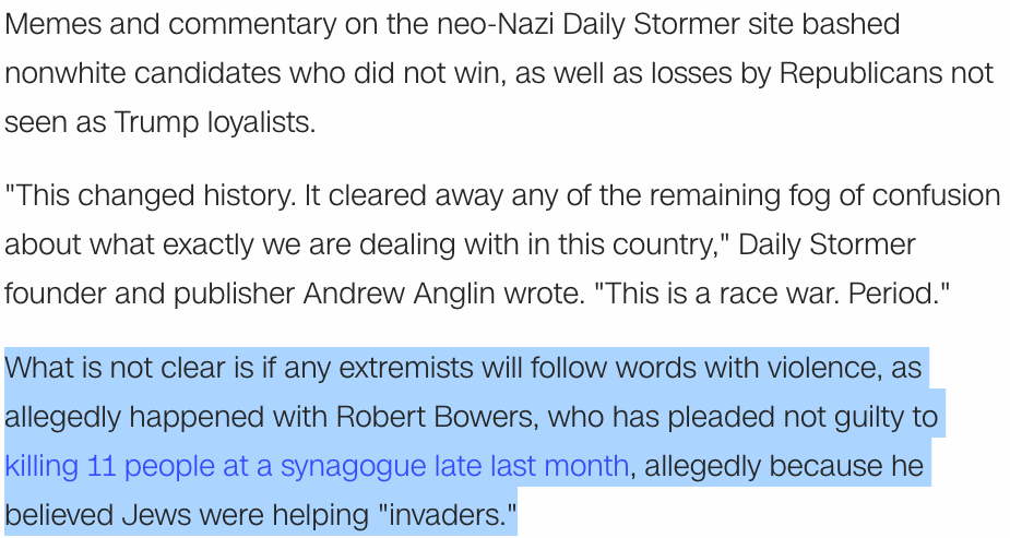 Also Tuesday on CNN, in an article written by two women who appear to be Jewish, CNN directly suggested that my freedom of speech would lead to people being murdered.