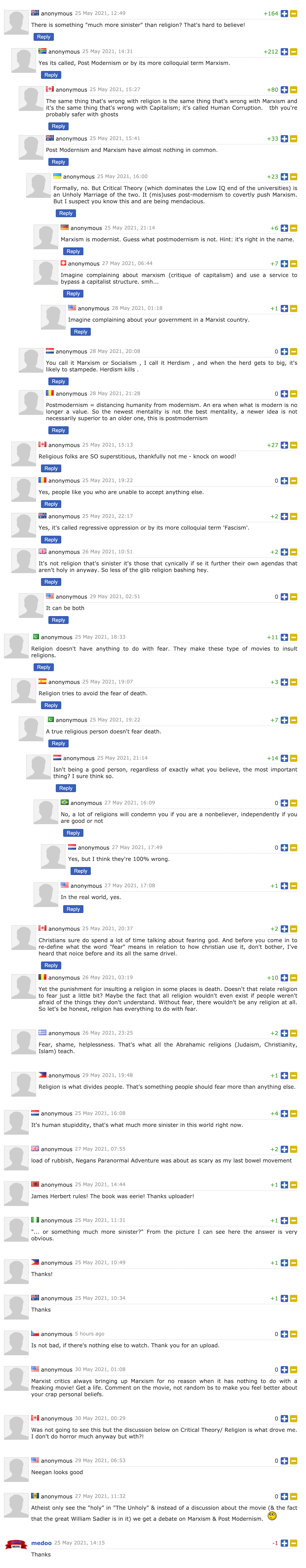 However, I wanted to mention the comments. I enjoy the comments section on the BitTorrent site, because as you might imagine is the case with international copyright violators, they do not really care about censoring speech. Therefore, virtually every comments section devolves into what every comments section would be if it were not for censorship: far right-wingers arguing with communists.