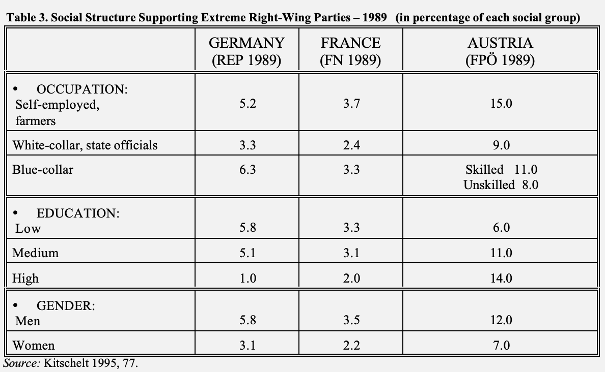 I know that’s not how statistics work and I know that chart isn’t explicitly pertinent to the discussion. But it does show that even without all of this bizarro world stuff that we’re dealing with now, long before feminism transformed into what it is now, women were half as likely as men to vote right-wing. That chart is also interesting as it is the year the Berlin Wall came down (the election was in May and the wall didn’t come down until November).