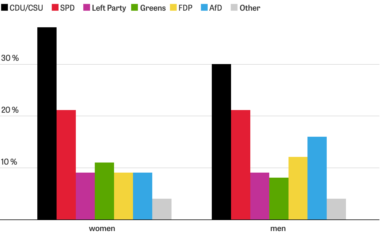 The situation was about the same in 2017, with men voting right-wing 2-1 – after the reunification, which brought a large body of new, traditional-minded voters into the country.