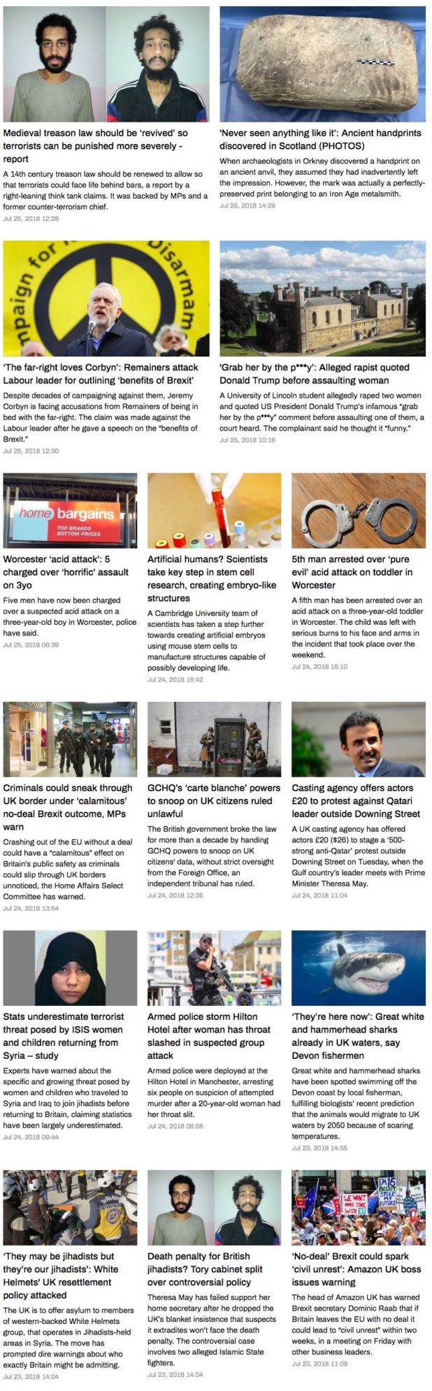 Here is a screenshot of the top stories out of the UK since the 25th over at RT.