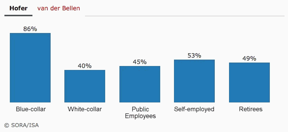As this graph above from the recent Austrian presidential election shows, among the working class an insanely high 86% voted for the Nationalist candidate.