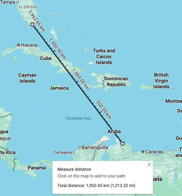 Although it was obvious to me on its face that this claim of that boat in the photo making this trip, which is 1,200 miles as the crow flies and closer to 2,000 miles in practice, was not at all possible, I did a lot of research, asking the AI and then reading source material, and I can confirm that there is simply no possible way that boat was driving from Venezuela to Florida.