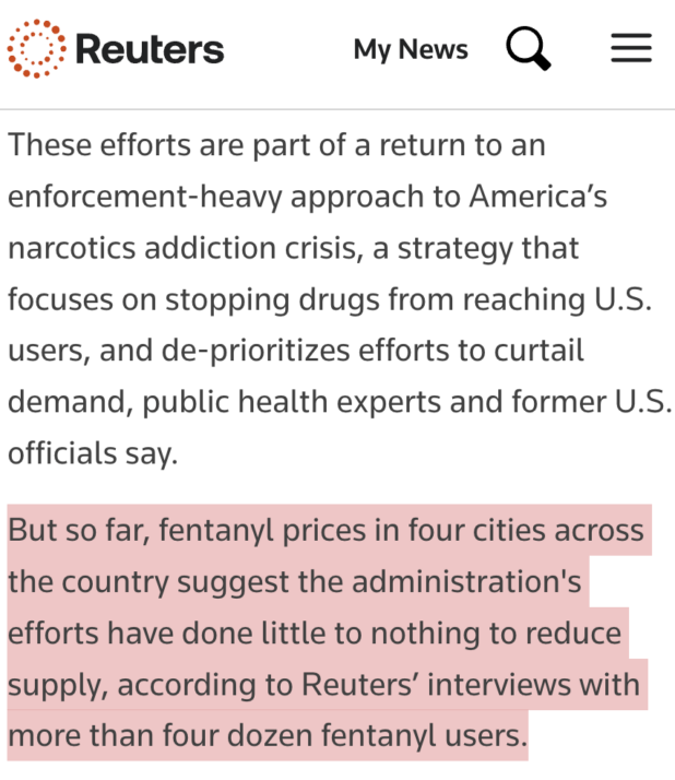 Trump has cracked down on the border. It’s sort of irrelevant at this point, since most of the people who wanted to come to America are already here, but he has closed the border. Have drug prices gone up due to this attempt at strangling the supply?