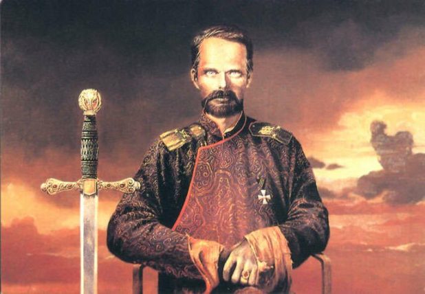 During the Russian Civil War, Roman von Ungern-Sternberg, a Prussian White Army officer, went to Mongolia where he raised a new Golden Horde to fight the Reds. He was seen as more demon or god than man. All sorts of myths swirled around him. The Dalai Lama named him the reincarnation of the God of War. If he had succeeded, he probably would have been a new Genghis Khan – who I believe was probably achshully huwhyte, but that’s another story.