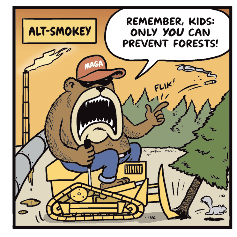 I don’t think anyone in America is trying to cut down forests, but “Alt-Smokey” is good.