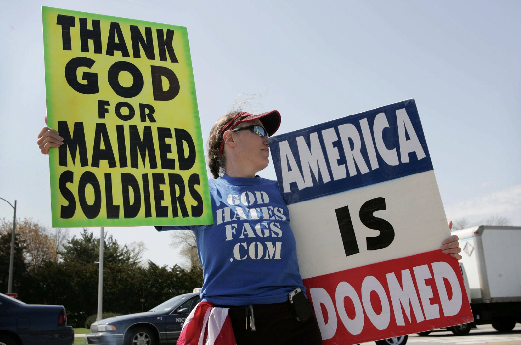 Westboro Baptist Church used to protest the funerals of dead soldiers.