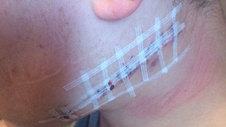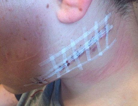 While walking to a group for disabled youngsters, he was chased by the group and stabbed in the neck, milimetres from his jugular artery.