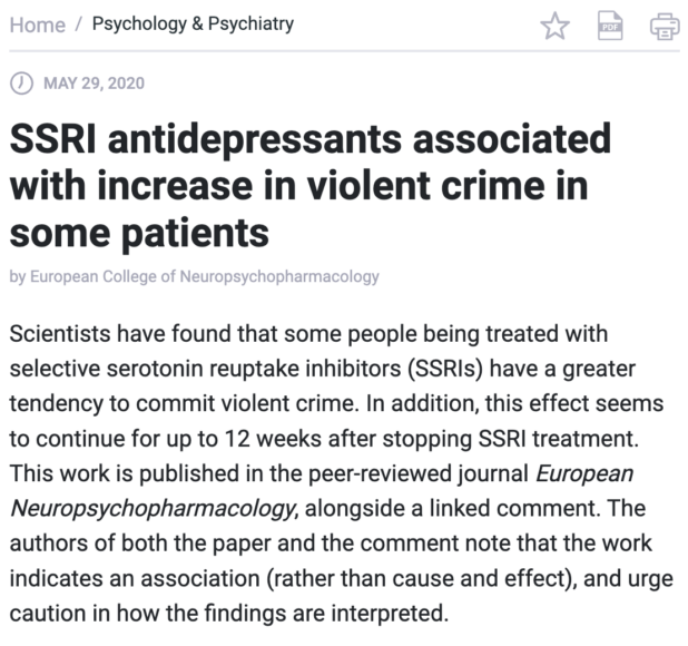 A lot of psychiatric drugs say on the label something to the effect that they increase the likelihood you’ll “harm yourself or others.”