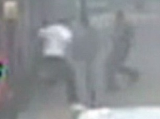 Instead of driving off, the 44-year-old goes out into the busy street and starts fighting the pair, both 23.