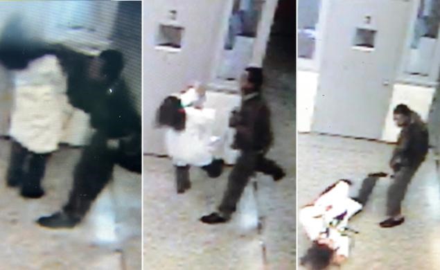 Joseph McRae’s unprovoked 11:30 a.m. attack Wednesday on Stephanie Porcelli in the East River lockup’s George R. Vierno Center was caught on a security camera.