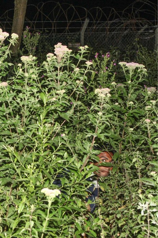 The man, leading a group of around 15 migrants, kept shouting at them until they left the outskirts of the camp.