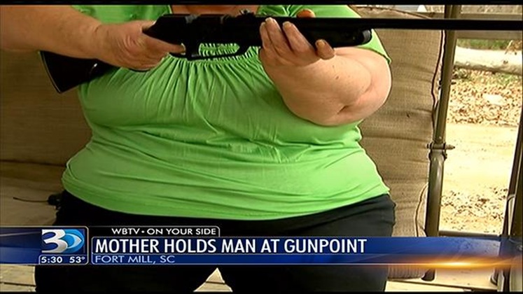 The mother quickly grabbed a BB gun.