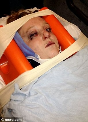 Ms Hunt, who was treated at the Queen’s Medical Centre in Nottingham, said: ‘My ear was hanging off, I had a broken nose, my knees were grazed and my face was bruised.