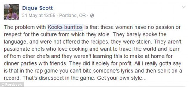 ‘If learning how to make a food from another culture and selling it is now considered cultural appropriation, then why not take this issue up with the successful Portland businesses that have been doing this at a much larger scale for years, and stop harassing these two women struggling to start a small business,’ another added.