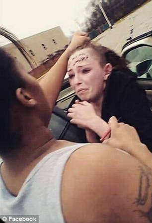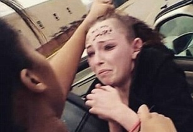 The attackers wrote ‘I got my a** whopped’ on her forehead with eyeliner and signed their names, the video shows.