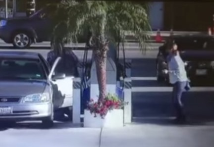 The woman moved away from the gas pump, police said, then the man pulled the gas nozzle from the vehicle, threw it on the ground, then drove her car northbound on Fallbrook Avenue.
