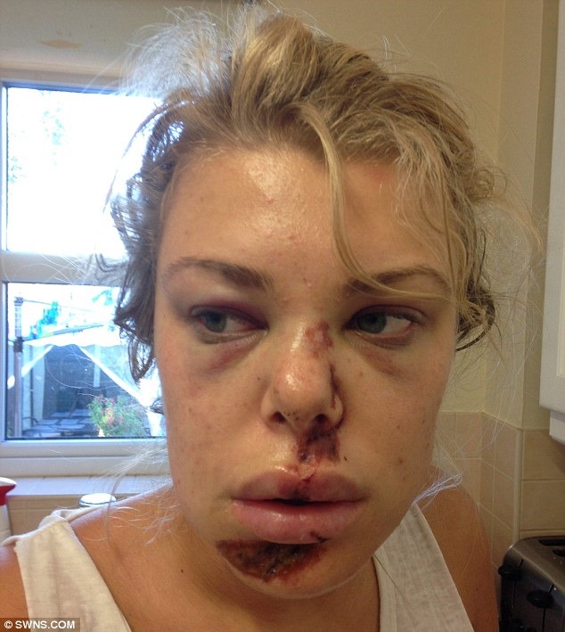 These photos show the horrific injuries a woman suffered after being punched in the face by a rogue taxi driver following a night out.