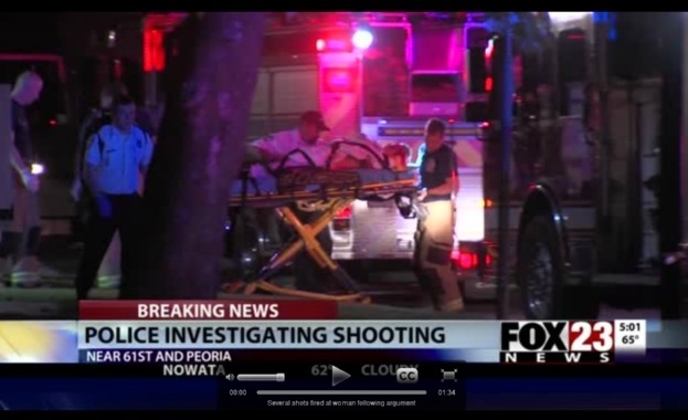 Tulsa Police Sergeant August Terbrock said the victim was standing on a balcony when she was shot several times by a man downstairs.