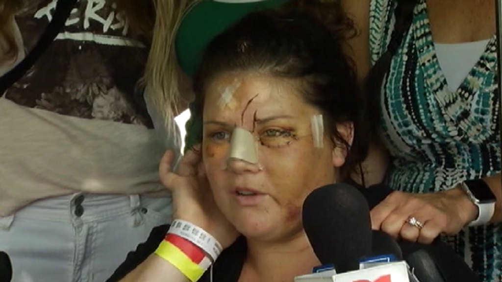 Her nose fractured, her face covered in stitches and bruises, Schuster said she looked in the mirror for first time Thursday.