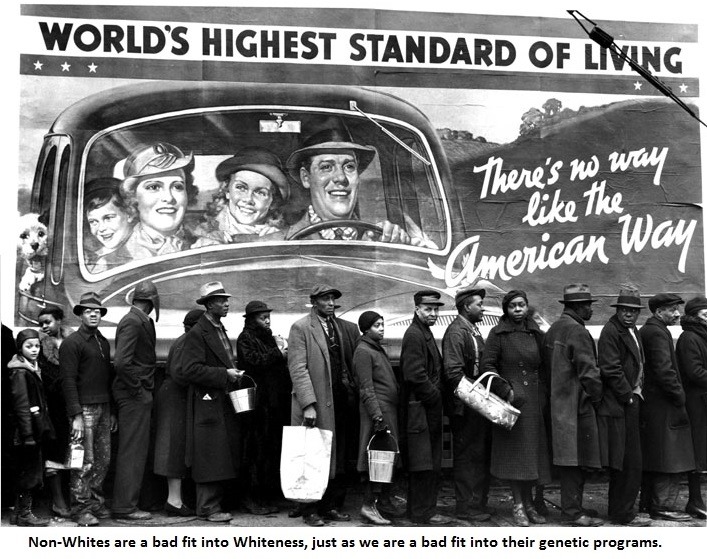 Our happiness depends on us facing the world as Whites and in not trying to be less than we can be and in not trying to fit non-Whites into our genetic program or societies or us into theirs. They do not have our genetic program and they are a bad fit into Whiteness, just as we are a bad fit into their genetic programs.