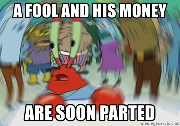 Basically, if a society allows fools to have money, that society is not long for this world. Fools must be parted from their money by cleverer people because they cannot be trusted with that wealth.