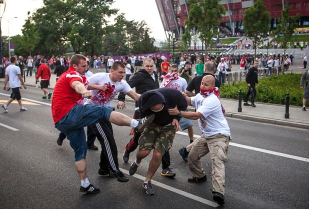 They’ve come by to say that they’re heading off to get shit-faced and cause trouble around town. There are going to be rolling fights with police and Antifa in Warsaw all-night long.