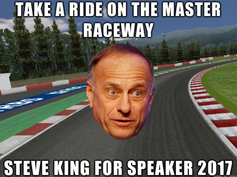 We’ve ridden the Trump Train to victory – now it’s time to do a few laps on the Steve King Master Raceway.