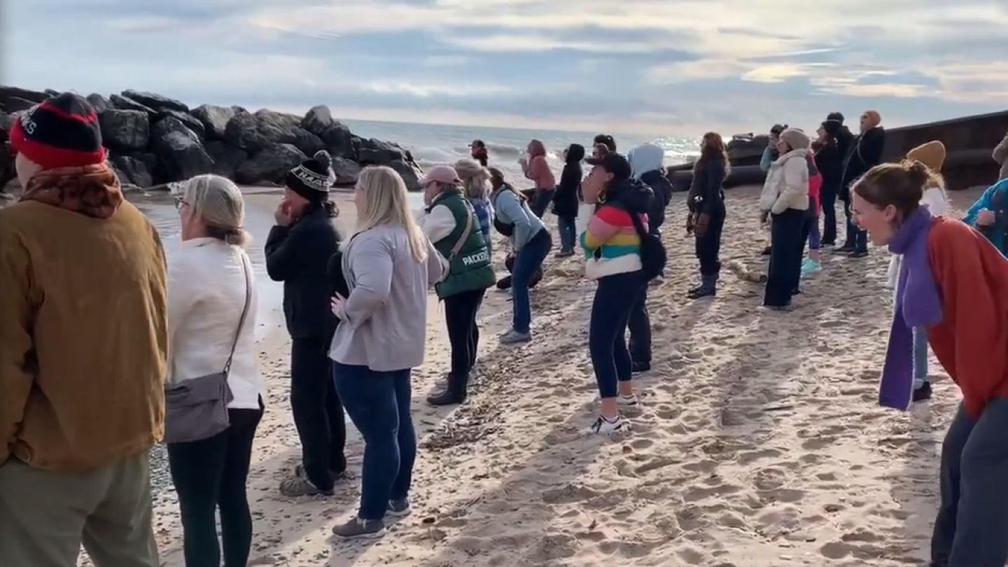 The extraordinary video shows around two dozen adult women screeching at the water. The screams eventually reach a crescendo, as video shows the shrieks getting gradually louder and louder until the group stopped.