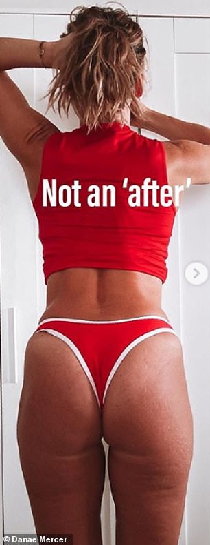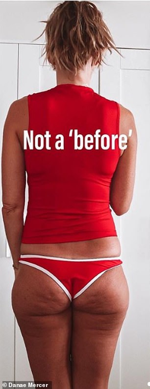 In the first image, Danae ‘deliberately angled’ her body so her bum was in the shadows while the flattering soft lighting hid her ‘cellulite and smoothed most of her stretchmarks’.