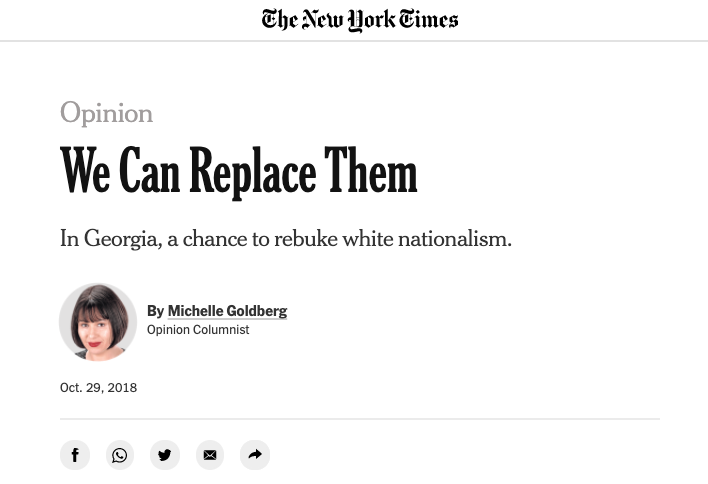 It is also, of course, in the media: the media is dominated by Jews, and is overwhelmingly in support of this replacement agenda. In his response to the attacks by ADL head Jonathan Greenblatt, Tucker noted that Jewish New York Times writer Michelle Goldberg had in 2018 penned a piece entitled “We Can Replace Them.”