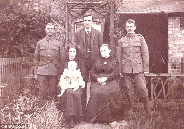 Christina Reynolds, 58, has uncovered the black and white photo almost 100 years after it was taken. It pictures the soldier with his wife, Bertha, and son – Mrs Reynolds’s father – Cyril.