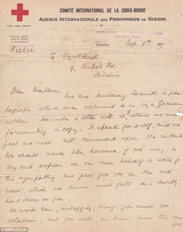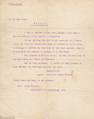 In a remarkable act of humanity, Gefreiter Wilczek sent the photo to the Red Cross in Geneva along with a forwarding note.