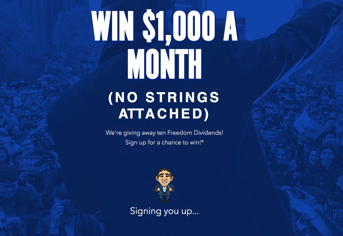 I assume that the site no longer works because of the huge number of people who signed up to try and get themselves that mf bag. If this is the case, then Yang’s Freedom Dividend already has its proof of concept.