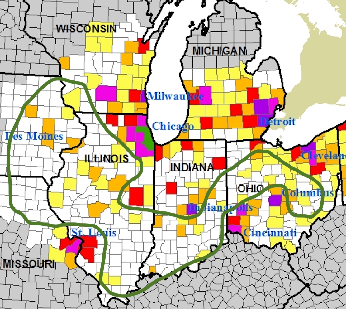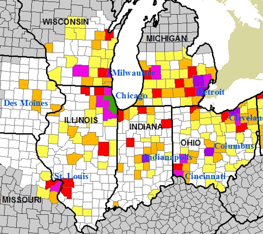 Look at this map of the Midwest population by county.