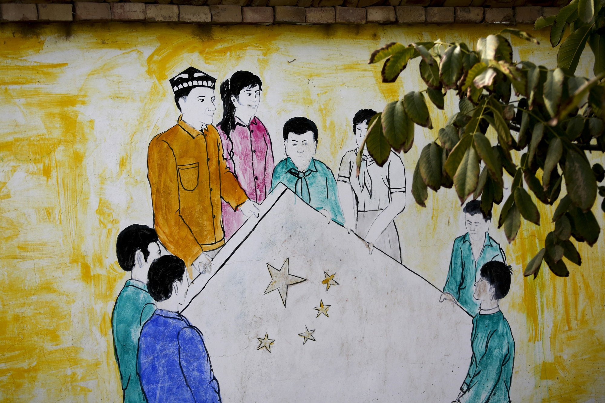 But a closer look at what the party calls “ethnic unity” reveals what isn’t there: mosques for Muslim worshippers, or traditional Uighur brick homes, often adorned with pointed arches and carved decorations. In their place are colorful murals of what authorities consider to be scenes of unity, such as a Uighur man and his family holding a Chinese flag.