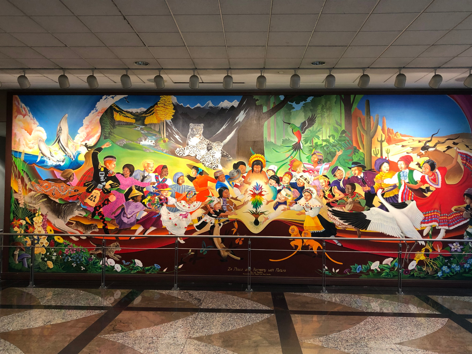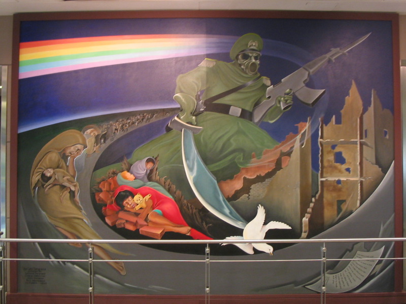 The second mural is entitled “Children of the World Dream of Peace,” and is basically the same thing as the nature one, just with war being overcome instead of environmentalism.
